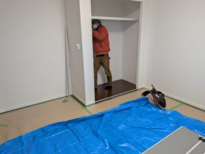 石川県七尾市のマンションリフォーム工事開始しました。今回はldkと洋室2つを1つの大きなLDKに変更して畳コーナーを設ける。フロアーの張り替え工事。ユニットバスの交換。洋室の収納に変更。クロスの貼り替えとボリュームのある工事になります。